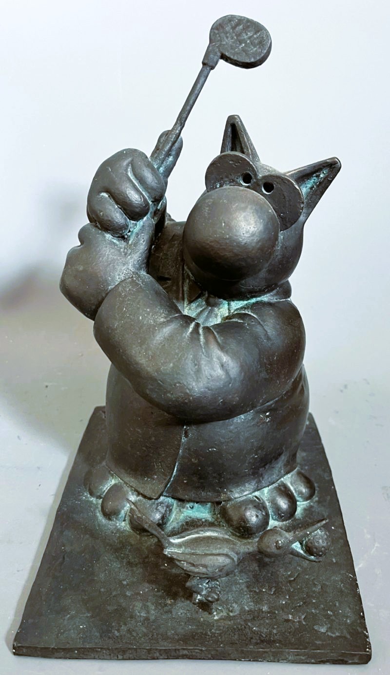 Bronze coulé par François Deboucq – Inspirée des grandes sculptures du chat telles qu’exposées aux Champs Elysées à Paris et au Parc Royal à Bruxelles