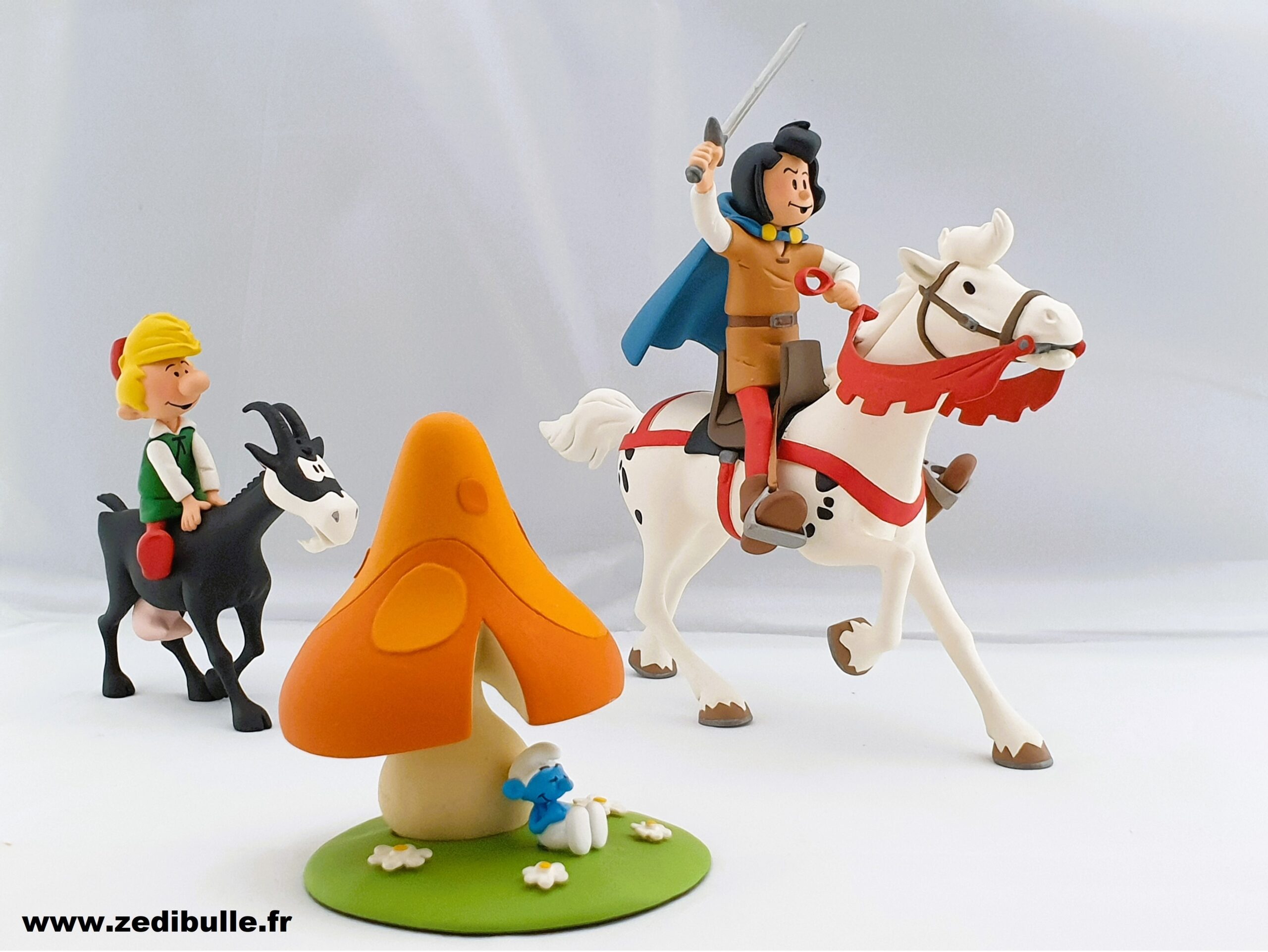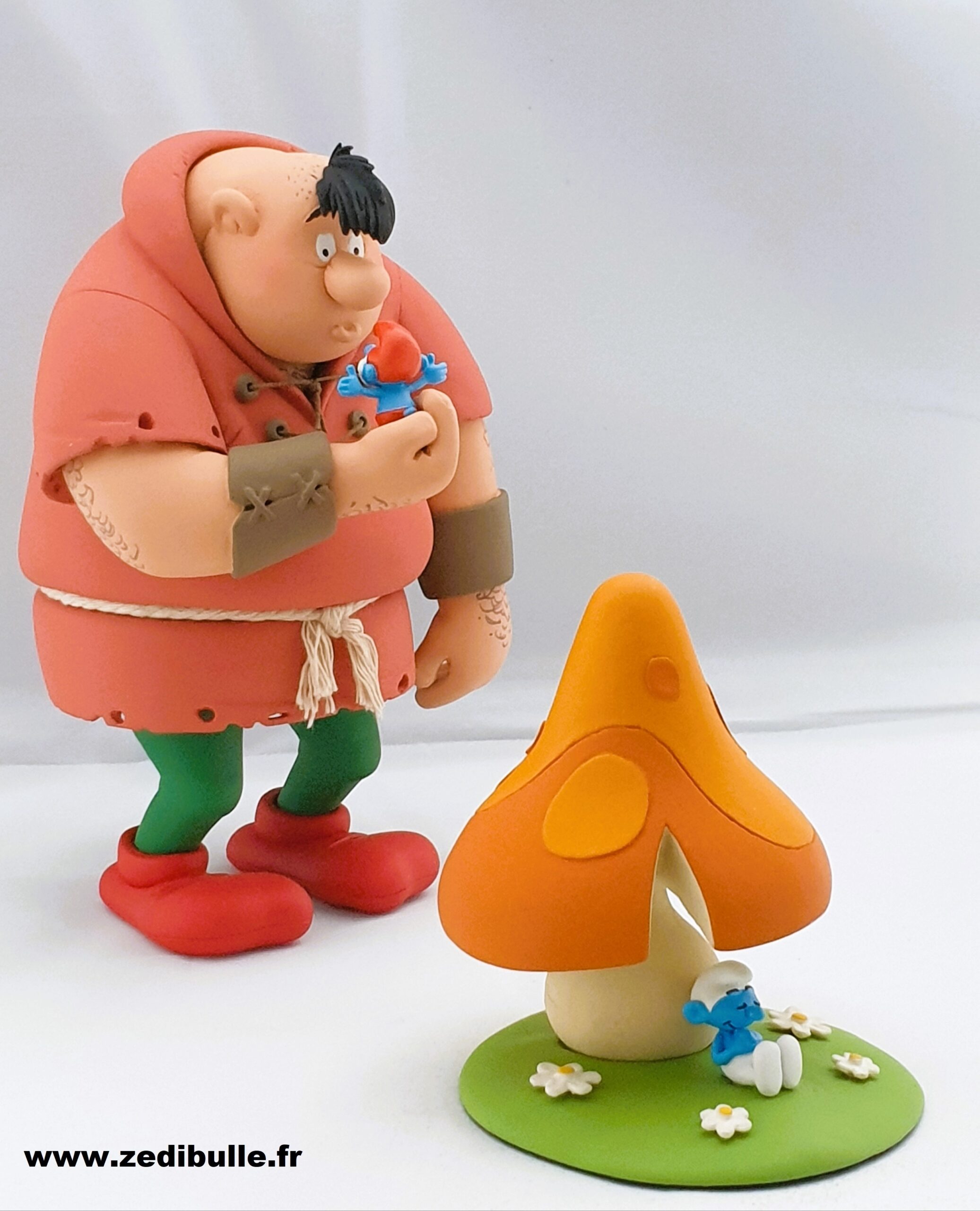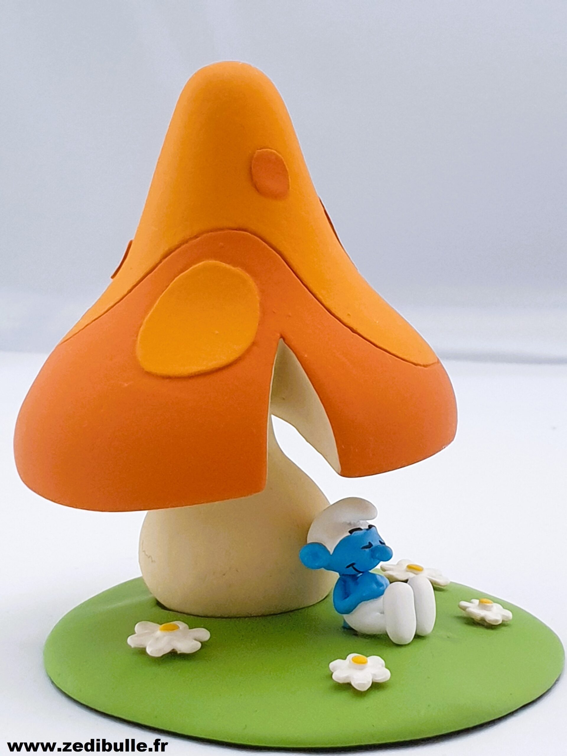 Cette figurine en métal du Schtroumpf Paresseux avec ce champignon (en résine) sont tirés d’un dessin original d’une œuvre de Peyo.