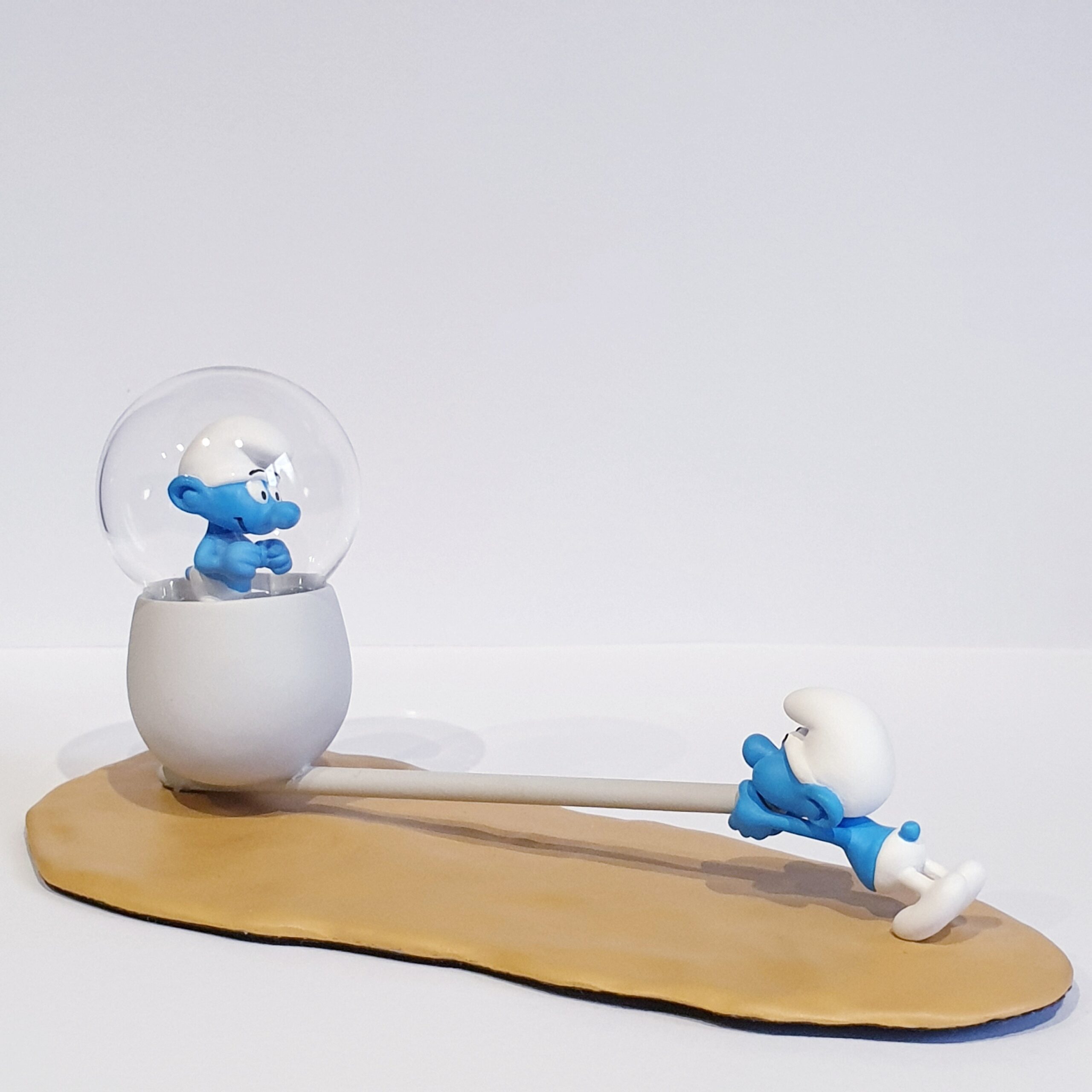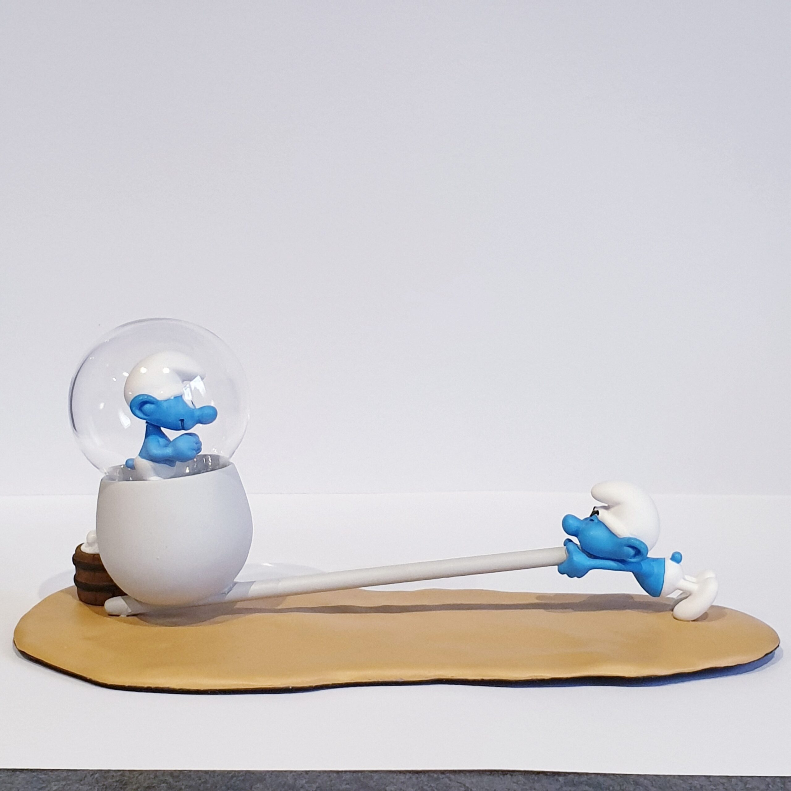 Les figurines sont en métal, le socle, la pipe et le seau sont en résine,