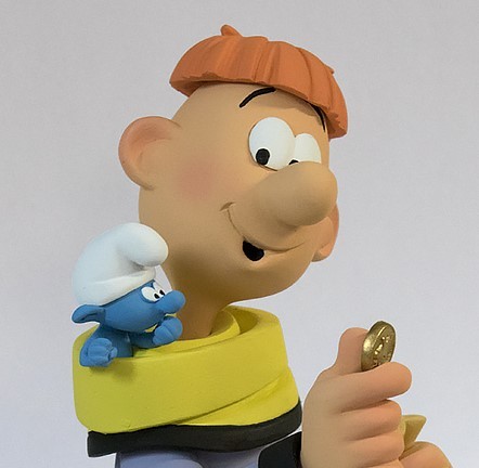 montre à un petit Schtroumpf fasciné une pièce de monnaie! Le ver est